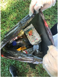 Nous nous sommes répartis dans chaque zone du complexe, équipés de gants et de sacs poubelles, en une heure nous avons ramassé plus de 15 sacs remplis au ras bord de plastiques, métal, caoutchouc, cartons, bouteilles en verres, tissus…