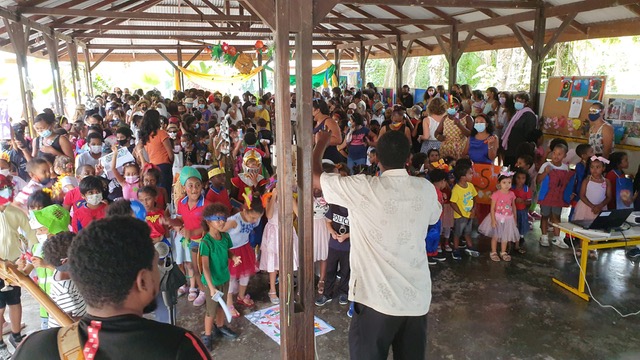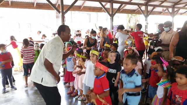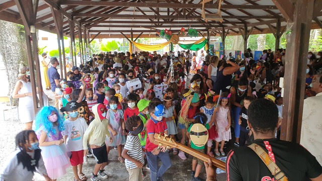 Le départ en vacances se fait toujours en musique cette année scolaire à l’EFS, cette fois-ci au rythme des sons de carnaval. Pas de thème retenu mais une idée générale : contraints par le port du masque toute l’année, donnons-lui enfin une image festive à travers le déguisement et le masque de carnaval. Le défilé de toutes les classes s’est organisé dans un grand charivari, chaque classe portant sa bannière pour se retrouver sous le préau en dansant en file indienne. On a même vu un drapeau de l’Ukraine dans ce défilé !
