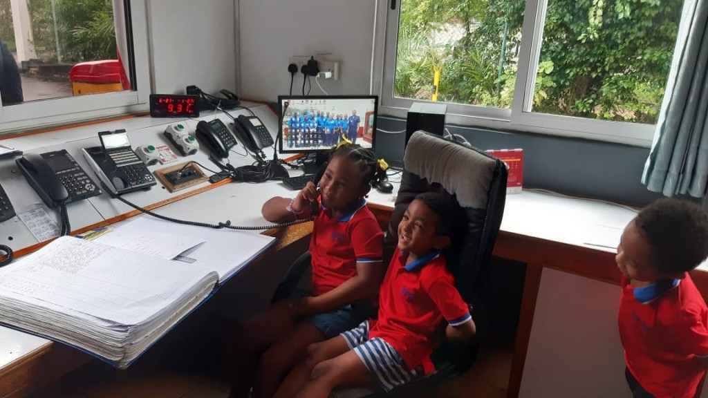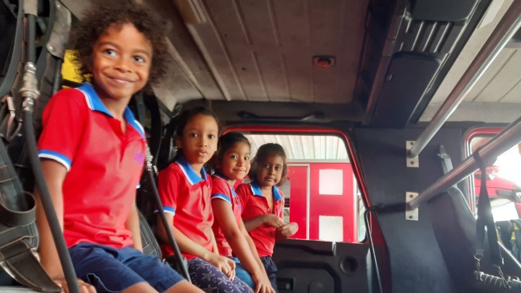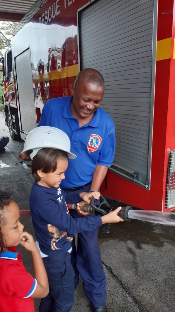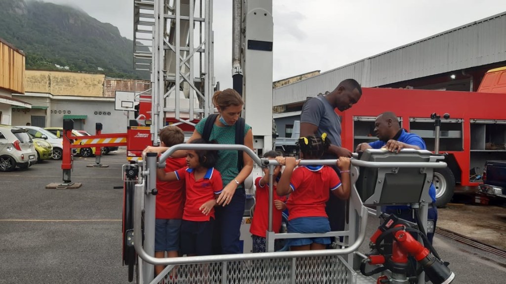 A l’École Française des Seychelles, tout un parcours éducatif est construit à partir de 3 ans jusqu’à 18 ans. En effet, la maternelle française se distingue par des programmes officiels, normés par l’Éducation Nationale française, pour l’apprentissage dès tout petit du savoir compter et savoir lire. Comprendre le monde qui nous entoure et mieux saisir les enjeux et les perspectives de notre société font partie des grands objectifs. Après « les Geckos apprennent à soigner les chauve-souris », après « les Geckos et la protection de la Mangrove », aujourd’hui « les Geckos chez les Pompiers ».