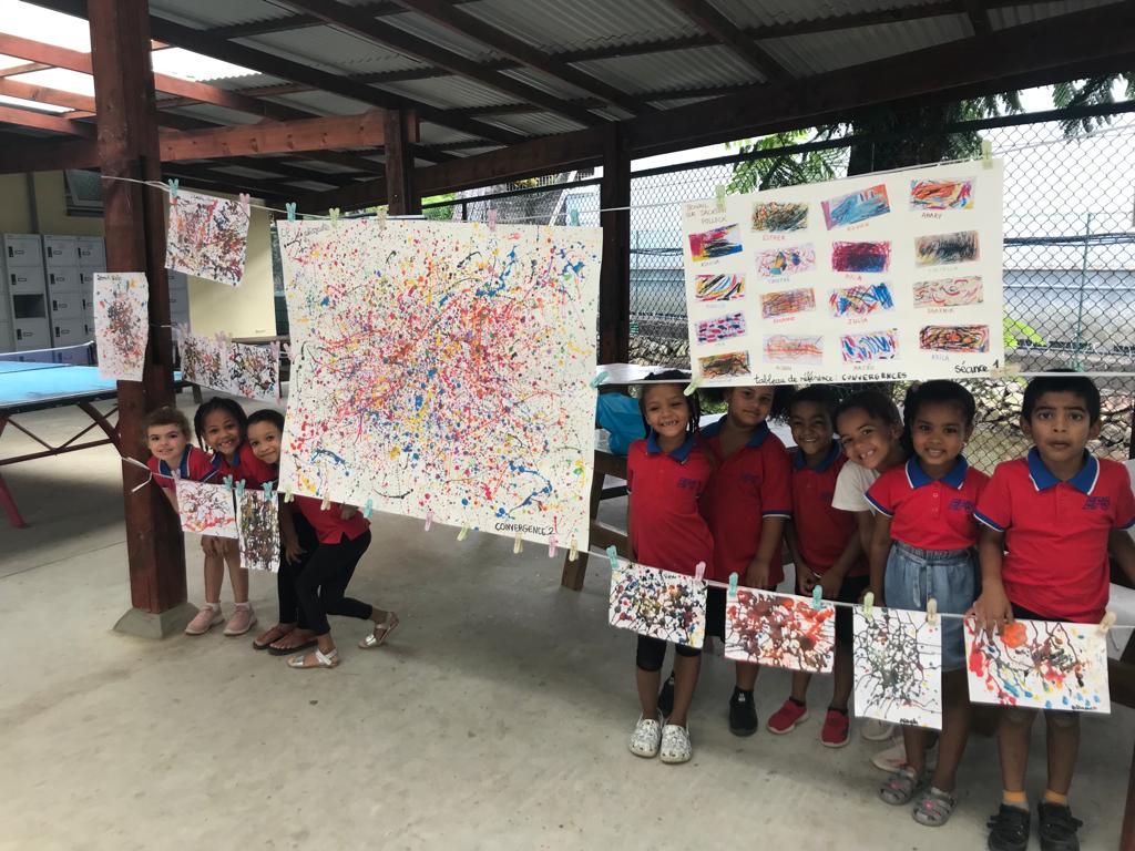 Les élèves ont étudié Jackson POLLOCK dans la classe et sur sa manière de peindre. Ils ont pu projeté de la peinture sur des feuilles “à sa manière”.