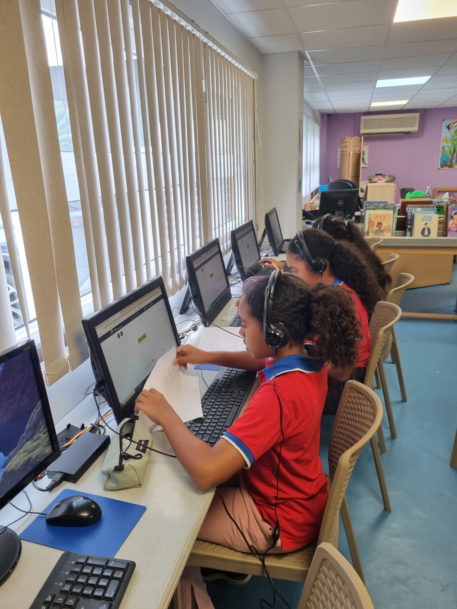 Secondaire : séance d’entrainement au « concours Les mots en or » , concours francophone de vocabulaire destiné aux élèves de la 6e à la 2de réunis en équipe autour de leur enseignante de français et documentaliste. L’EFS présente cette année 3 équipes des classes de 5ème, 4ème et seconde qui utilisent le temps d’étude pour travailler leur vocabulaire.